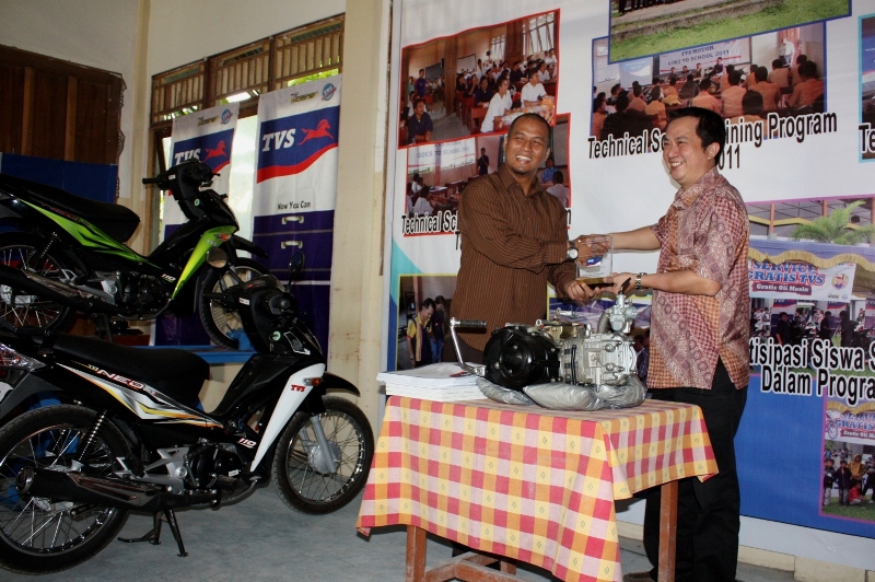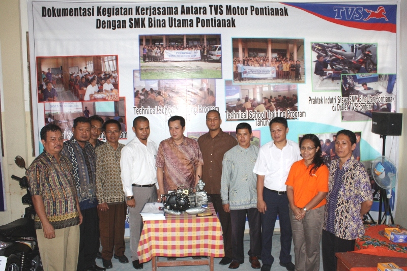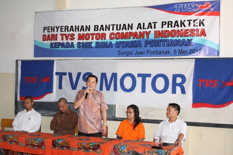 Kini melalui PT Gemilang Surya Motorindo, Regional Distributor (Main Dealer) TVS Motor untuk wilayah Kalimantan Barat menyerahkan unit mesin, sepeda motor TVS, bikelift dan buku-buku pendukung pedoman servis kepada SMK Bina Utama yang berlokasi di Jl.H.Rais A.Rahman Kel.Sungai Jawi, Pontianak, Kalimantan Barat.