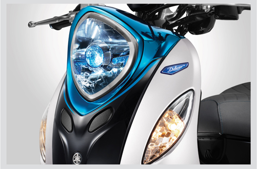 Selain naik kelas, desain Yamaha New Fino 125 Blue Core juga lebih fashionable. Desain headlamp berbentuk diamond yang merupakan revisi teranyar kini dipadukan dengan lampu LED dengan proyektor berwarna biru. Pun demikian dengan lampu senja dan sein yang menyatu dengan tebeng depan barunya.
