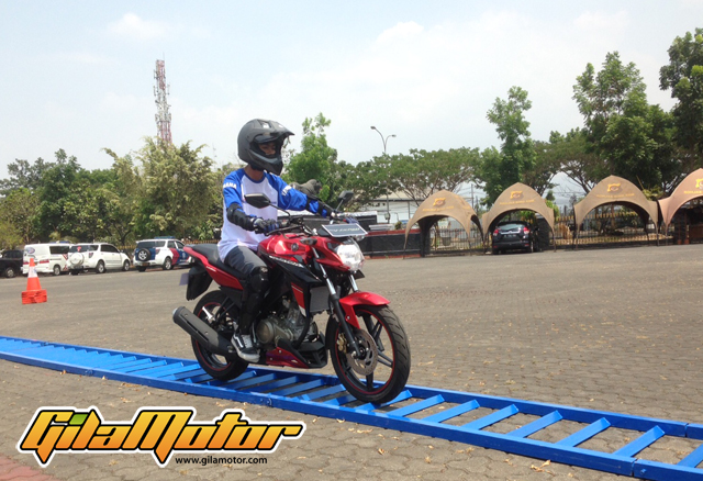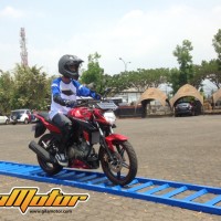 Setelah mendapatkan pengetahuan tersebut, para peserta kemudian diajak untuk mempraktekan teori pada beberapa rintangan yang merupakan simulasi penggambaran kondisi di jalan raya.