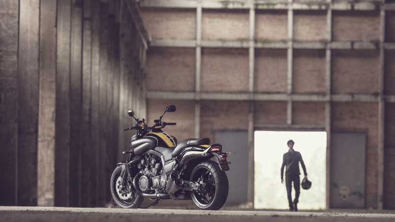 Dan tak bisa dibayangkan jika VMAX harus mengganti warna gelapnya dengan warna kuning retro hanya untuk edisi 60th Anniversary Yamaha. Tapi untungnya hal itu tak terjadi, pabrikan yang bermarkas di Iwata itu hanya sedikit memberikan aksen kuning retro di bagian atasnya.