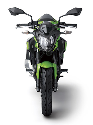 Mempertahankan karakter Z yang lincah dan agresif, Kawasaki mengganti stang jepit yang digunakan pada Ninja 250RR Mono dengan stang lebar untuk mendapatkan posisi berkendara yang lebih tegak.