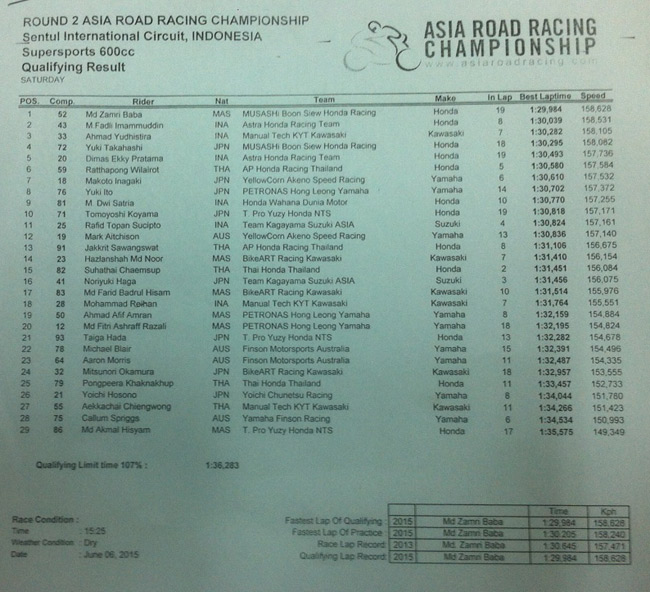 Hasil kualifikasi Supersport 600 ARRC Seri2 Sentul :